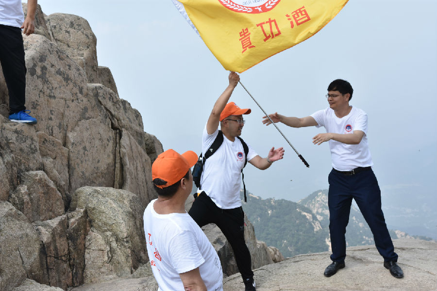 首先,本次荟萃于泰山之巅的贵功众家人们都是百里挑一的精英,他们一致认可贵功酒的品质,认可贵功团队的做事风格,认可酱酒在国家“黔货出山”政策支持下的未来发展空间,他们是第一批携“黔品”出山的贵功人,他们充满激情和正能量,共同努力打造一个更加优秀的大平台,踏踏实实践行把人做好、把事做好、把酒酿好、把“黔品”带好。每年贵功都会面向大学生招聘,解决大学生的就业问题为政府分担,排忧解难,不断培养新人,为社会输送有用人才,为中国特色社会主义新时代添砖加瓦。
