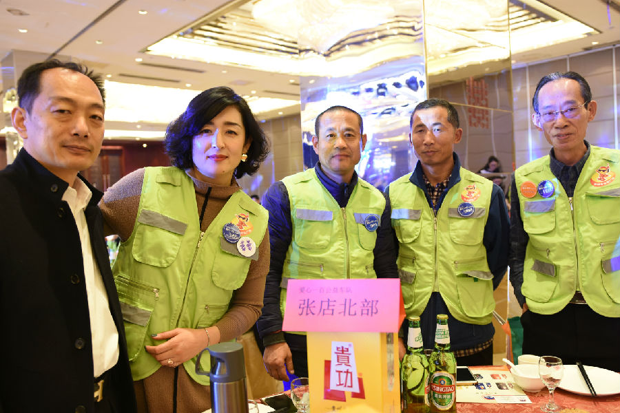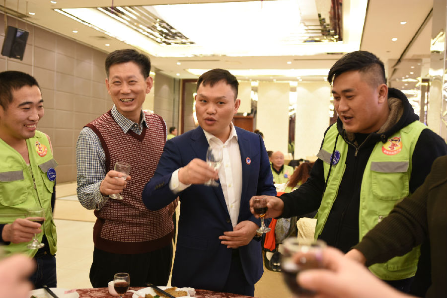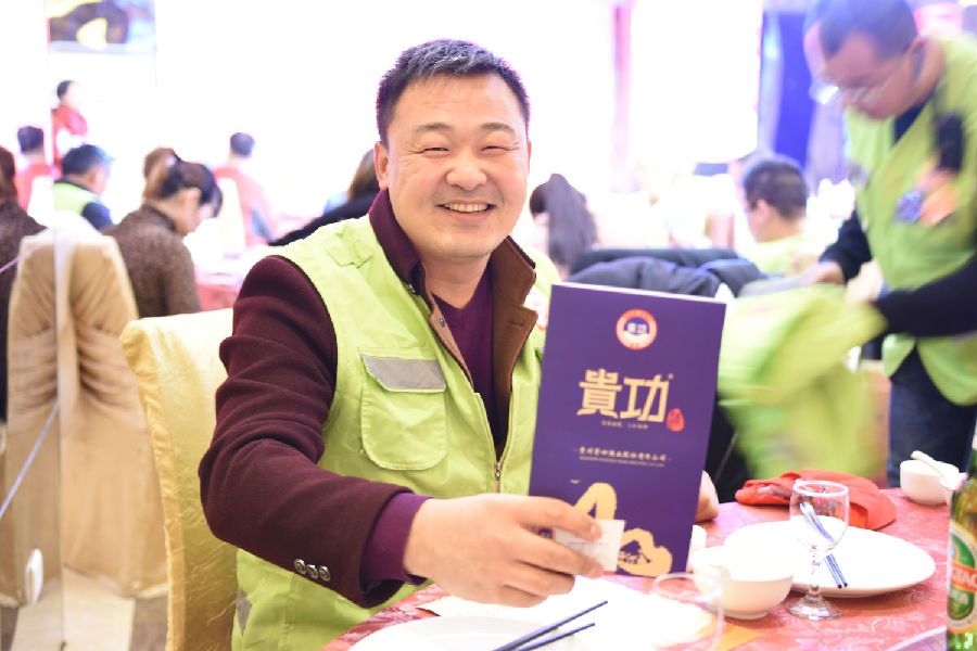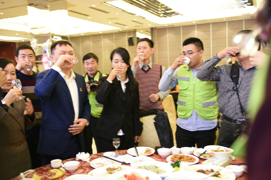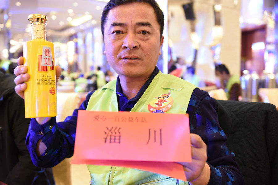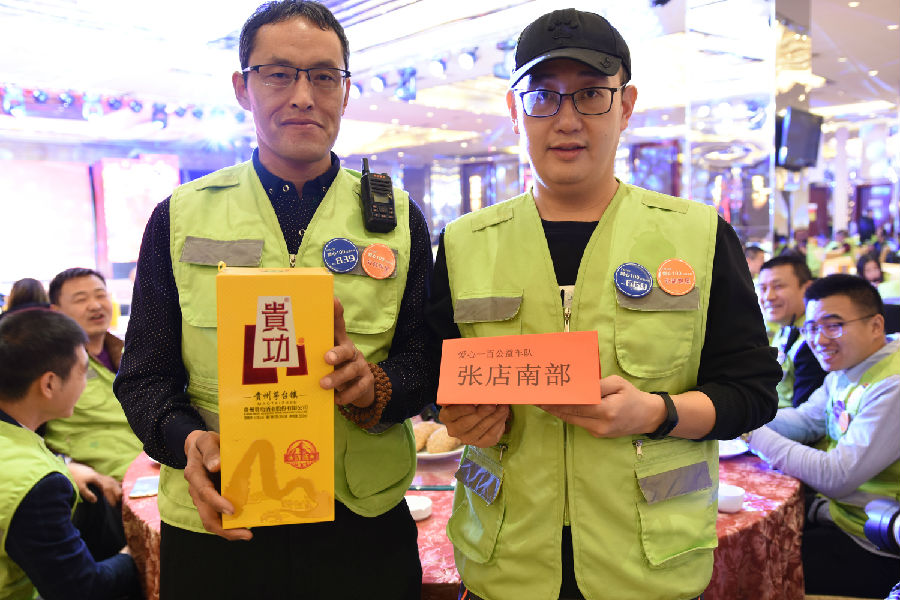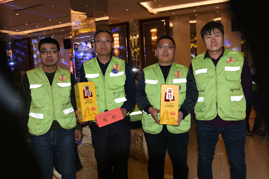 为表敬畏之情,贵功酒董事长兼CEO熊成、贵功酒全球销售总监张仙凤、贵功酒淄博分公司崔飞艳、贵功酒淄博临淄办事处负责人崔国柱、贵功酒淄博桓台办事处负责人万艳纷纷举起山东标志性的大杯子,挨桌敬酒,爱心100公益车队也感受到了贵功酒满满的热情,露出了灿烂的笑容。