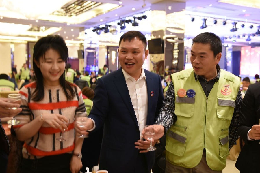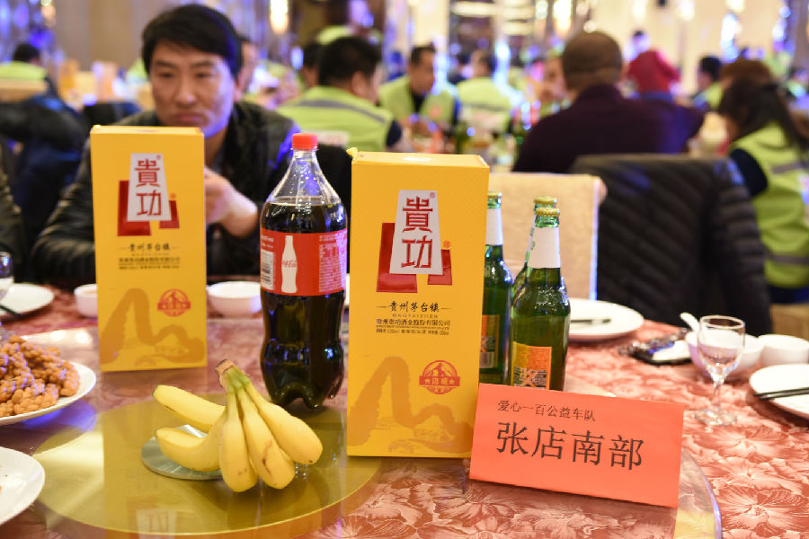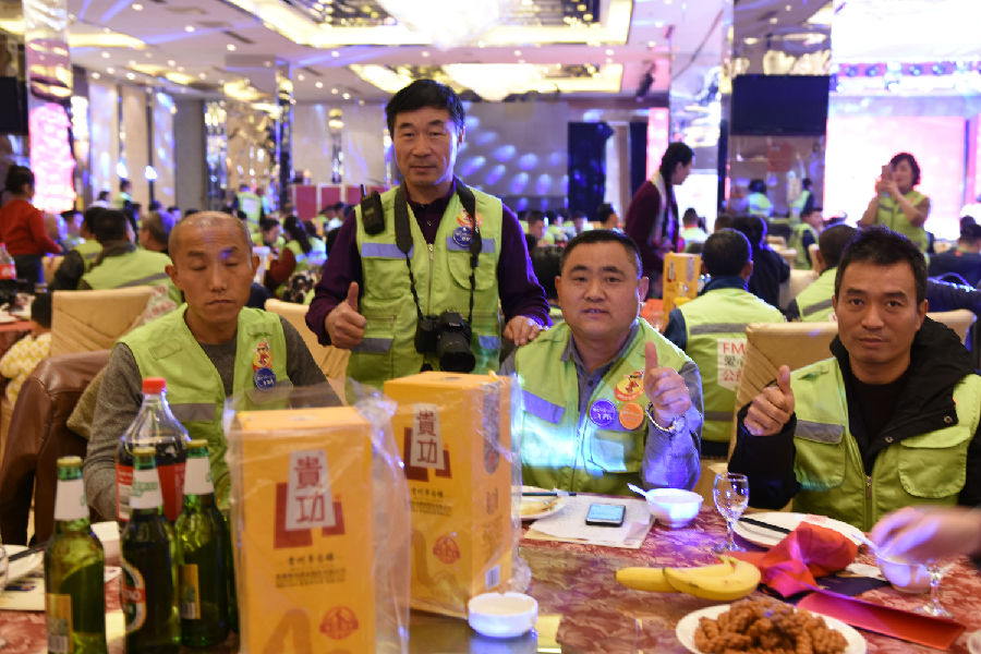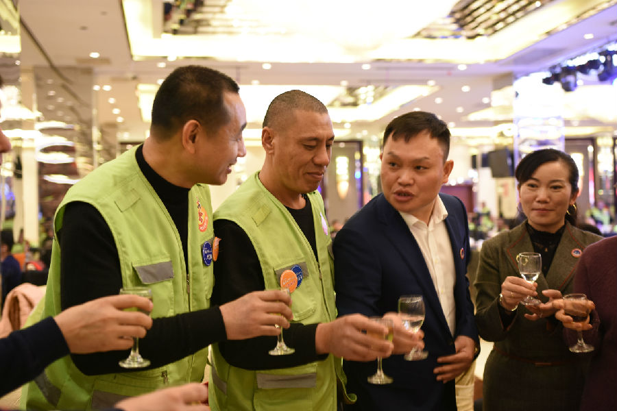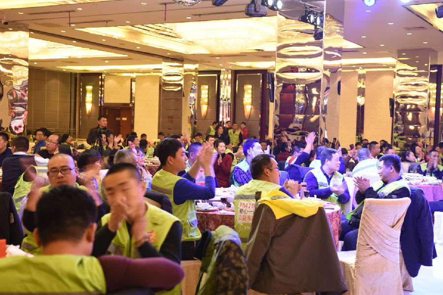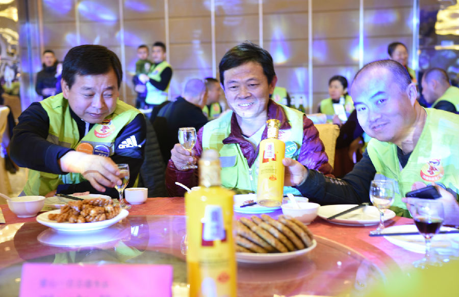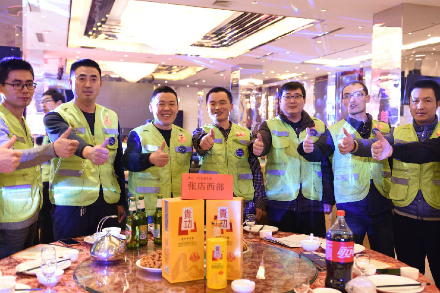 为表敬畏之情,贵功酒董事长兼CEO熊成、贵功酒全球销售总监张仙凤、贵功酒淄博分公司崔飞艳、贵功酒淄博临淄办事处负责人崔国柱、贵功酒淄博桓台办事处负责人万艳纷纷举起山东标志性的大杯子,挨桌敬酒,爱心100公益车队也感受到了贵功酒满满的热情,露出了灿烂的笑容。